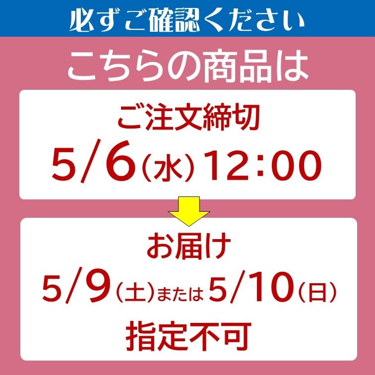 ※5/6(水)12:00以降のご注文は、5/13(水)以降 順次配送します。