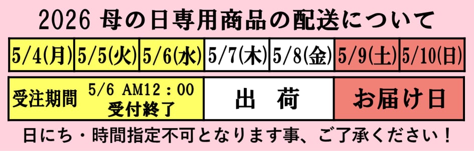 母の日ギフトは、毎年荷物が大量集中し全国的に配送遅延が発生しております。