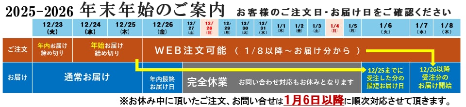 年始は2026年1月6日㈫お届けからになります。