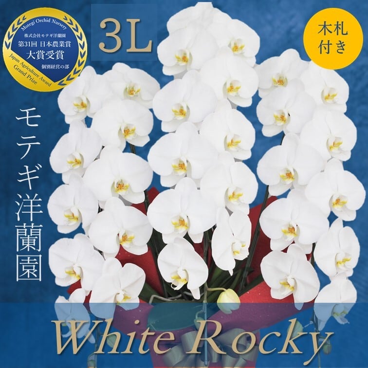 花 胡蝶蘭 贈り物 ギフト プレゼント お祝い 大輪 大輪胡蝶蘭 モテギ洋蘭園 開店祝い 開院祝い 開業祝い リニューアルオープン 移転祝い 就任祝い 昇進祝い 上場祝い 当選祝い 叙勲 授章 快気祝い 昇進祝い 退職祝い 内祝い 新築祝い 結婚祝い 誕生日プレゼント お礼 お歳暮 お中元 いい夫婦の日 勤労感謝の日 個展祝い 還暦 古希 喜寿 傘寿 米寿 卒寿 白寿 百寿 茶寿 敬老 高級 金賞 ホワイトロッキー 3本立て 持ち帰り テイクアウト